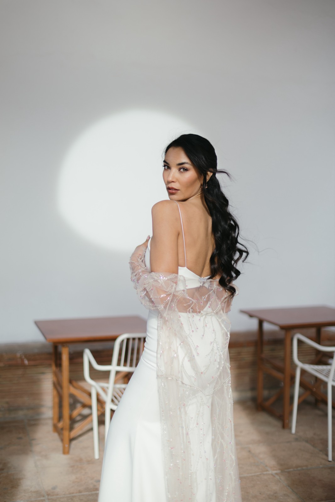 Todos nuestros vestidos se confeccionan a medida en nuestro atelier, por lo que puede realizarse algún ajuste o modificación que creas conveniente. En el precio se incluyen todos los arreglos y pruebas necesarias para que el vestido quede perfecto.