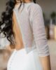 Top corto de pedrería fina con manga larga y escote en la espalda en forma de pico que la deja medio descubierta. Lleva detalle de botones en la manga para darle un toque más fino. Combinado con nuestra famosa falda Hilda de sirena tipo tubo y con cola, una delicia de conjunto.